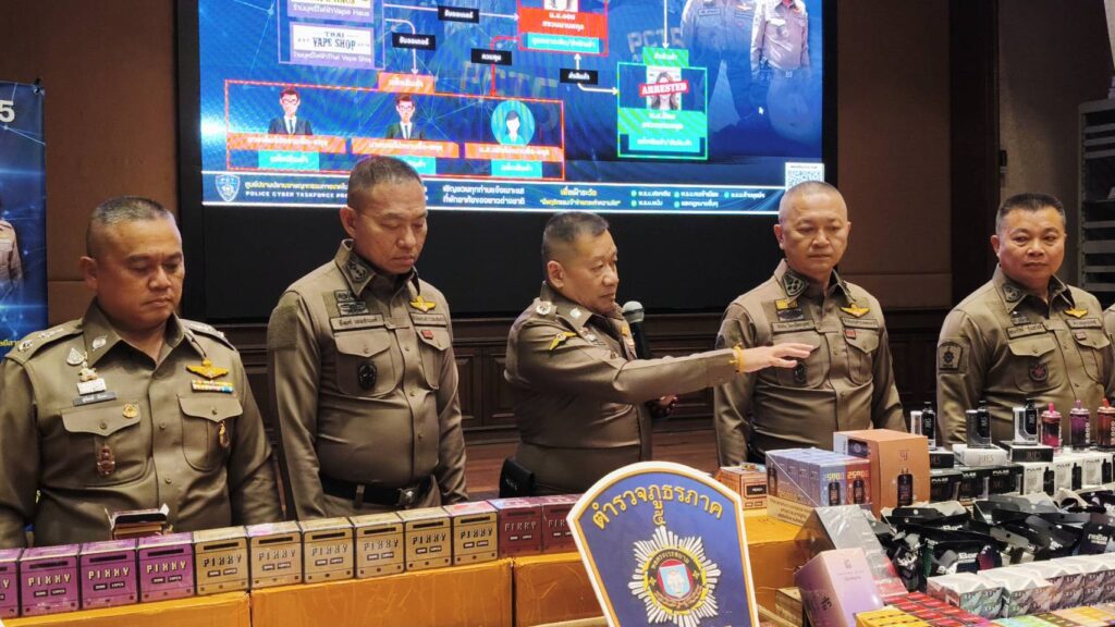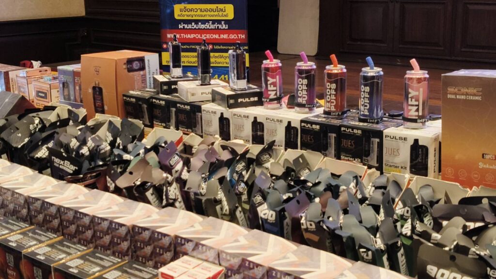 ตร.ภ.5 โชว์ผลงานกวาดล้างบุหรี่ไฟฟ้าเปิดขายโจ๋งครึ่มผ่านออนไลน์ส่งถึงบ้าน จับล็อตนี้เบาะๆกว่า 3.6 หมื่นชิ้น พร้อมผู้ต้องหา 2 ราย มูลค่าร่วม 7 ล้านบาท