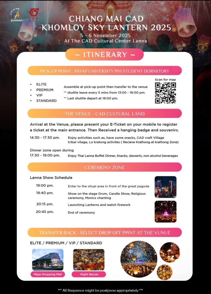 เชียงใหม่ 6 พ.ย.- บรรยากาศงานประเพณีลอยกระทงหรือยี่เป็งเชียงใหม่ 2568 ยังคึกคักต่อเนื่อง โดยคืนนี้(6 พ.ย.)เป็นคืนสุดท้ายของกิจกรรมมีไฮไลท์หลักก็คือการประกวดขบวนกระทงใหญ่ชิงถ้วยพระราชทานพระบาทสมเด็จพระเจ้าอยู่หัวมีริ้วขบวนเข้าร่วม 31 ขบวน ส่วนคืนที่ผ่านมาแม้จะมีฝนตกประปรายแต่นักท่องเที่ยวก็ยังคงให้ความสนใจอย่างหนึ่งแน่นโดยเฉพาะชาวต่างชาติที่ลานควงประตูท่าแพจุดจัดกิจกรรมหลัก เป็นที่น่าสังเกตเรื่องของการรณรงค์และควบคุมการปล่อยโคมลอยทำให้เขตเมืองมีการปล่อย 100 ชิ้นทำให้ที่บริเวณท่าอากาศยานเชียงใหม่พื้นที่เขตควบคุมเจ้าหน้าที่คอยตรวจตราตลอด 24 ชั่วโมงผ่านคืนแรกของการอนุญาตไม่พบเศษโคมลอยมาตกในพื้นที่ท่าอากาศยานแต่อย่างใดหรือคืนสุดท้ายที่ต้องเฝ้าระวังอย่างใกล้ชิดต่อไปแต่ทั้งนี้พบว่ามีภาคเอกชนและบางหน่วยงานได้มีการจัด event ใหญ่ เพื่อเชิญชวนร่วมปล่อยโคมลอยโดยเฉพาะจึงทำให้ปีนี้มียอดการขออนุญาตปล่อยมากเป็นพิเศษซึ่งไฮไลท์หลักที่ถูกจับตามองและเป็นที่สนใจคือ ที่อำเภอแม่ออน กับงาน Chiang Mai CAD khomloy sky lantern festival 2025 ณ The CAD Cultural Centre Lanna ที่บริษัท เชียงใหม่ ซีเอดี อินเตอร์เนชั่นแนล จัดขึ้นภายใต้แนวคิด “ด้วยสำนึกในพระมหากรุณาธิคุณและความอาลัยนิรันดร์แด่สมเด็จพระบรมราชชนนีพันปีหลวง” เพื่อส่งเสริมการอนุรักษ์ประเพณีและวัฒนธรรมไทย โดยกิจกรรมต่าง ๆ เช่น การปล่อยโคมลอย การแสดงและการจุดพลุอย่างเหมาะสมมีการขออนุญาตปล่อยโคมคืนละไม่ต่ำกว่า 20,000 ดวงมีการกำหนดจัดงานระหว่าง 5-6 พ.ย.โดยมีนักท่องเที่ยวชาวต่างชาติให้ความสนใจจองแพคเกจล่วงหน้าเข้ามาร่วมงานจำนวนมาก โดยจำหน่ายตั๋วต่อราย ตั้งแต่ราคา 4,800-15,500 บาท หลายคนผิดหวังที่ไม่ได้เข้าร่วมงานครั้งนี้เพราะบัตรจำหน่ายหมด ทางโครงการก็มีการประกาศเชิญชวนร่วมกิจกรรมอีกครั้งในช่วงส่งท้ายปีเก่าต้อนรับปีใหม่เคาท์ดาวน์ 2026 ทันทีด้วย สถานที่ดังกล่าวมีการเผยแพร่ภาพการปล่อยโคมลอยนับหมื่นดวงเต็มท้องฟ้าผ่านโซเชียลมีเดียจำนวนมาก และเหลือการจัดกิจกรรมคืนสุดท้ายคืนนี้อีกคืน เช่นเดียวกับที่อำเภอสันทรายที่สนามกอล์ฟ the Royal Chiang Mai golf club กับงาน Chiang Mai CAD sky lantern festival ก็จัดกิจกรรมคล้ายกันมีขออยุญาตปล่อยโคมนับหมื่นดวง เป็นต้น ทำให้บรรยากาศงานยี่เป็งพื้นที่รอบนอกคึกคักเป็นที่ประทับใจนักท่องเที่ยว ซึ่งคืนสุดท้ายต่างก็เฝ้าจับตาดูความงดงามของริ้วขบวนแห่กระทงใหญ่ชิงถ้วยพระราชทานฯ ซึ่งมีการประกาศปิดเส้นทางบางแห่งเพื่อให้ประชาชนวางแผนการใช้เส้นทางตั้งแต่ช่วงบ่ายเป็นต้นไป.