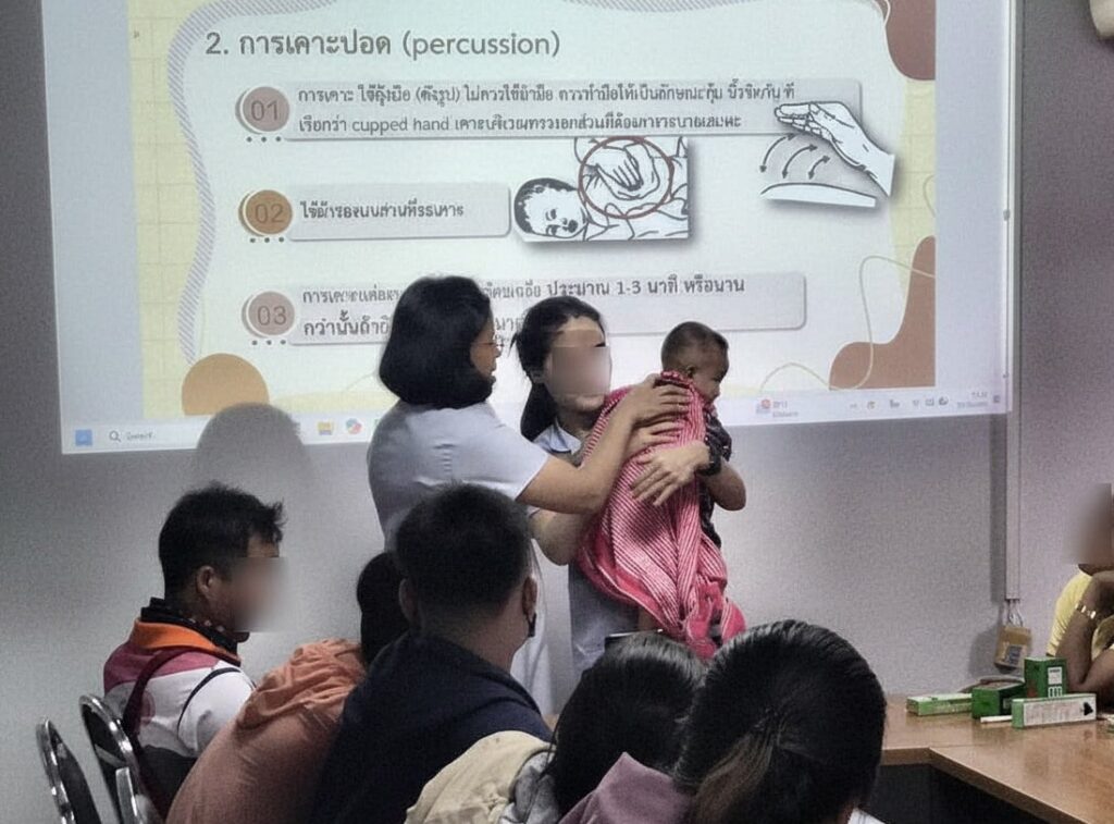 “ในพื้นที่เราจะได้เห็นเด็กที่ตัวร้อนแต่ถูกผ้าห่อไว้แน่นเพราะพ่อแม่คิดว่าเด็กหนาว หรือแม่ที่ตั้งครรภ์แต่ไม่กล้ากินอาหารที่ดีเพราะกลัวลูกตัวใหญ่คลอดยาก ความเข้าใจผิดเล็กๆ เหล่านี้กลายเป็นปัญหาชีวิต เราเลยต้องเริ่มจากการสอน อสม. ให้รู้จริง รู้ลึก และสามารถอธิบายให้คนในหมู่บ้านเข้าใจได้ โดยให้ลงมือทำจริงในพื้นที่ ไม่ใช่แค่เรียนในห้องประชุม”นายบวรศักดิ์ ย้ำและเล่าถึงสิ่งแรกๆ ที่โครงการเข้าไปทำงาน“ซูเปอร์ อสม.” ไม่ได้ใช้การอบรมแบบเดิม แต่สร้าง “ระบบนิเวศแห่งการเรียนรู้” ที่ให้ อสม. เรียนรู้จากการลงมือทำจริง เริ่มจากเวิร์กชอปเชิงปฏิบัติที่ใช้เครื่องมือจริง ไปจนถึงการเข้าไปสังเกตการณ์ในห้องฉุกเฉินของโรงพยาบาล พร้อมระบบพี่เลี้ยงจากเจ้าหน้าที่ รพ.สต. คอยกำกับดูแลในช่วงแรกจนกว่าจะมั่นใจและทำได้ด้วยตนเอง มีการฝึกซ้อมต่อเนื่องทุกเดือน และเชื่อมโยงกันผ่านกลุ่มไลน์ ซึ่งเป็นเทคโนโลยีเรียบง่ายแต่ทรงพลัง เพราะช่วยให้ซูเปอร์ อสม. ส่งภาพอาการผู้ป่วยเพื่อขอคำปรึกษาจากทีมพี่เลี้ยงและนักวิจัยได้ตลอดเวลา การเรียนรู้จึงเกิดขึ้นจริงในทุกพื้นที่ ทุกครั้งที่ออกปฏิบัติงาน และความรวดเร็วนี้เองที่ช่วยให้ชีวิตคนในชุมชนปลอดภัยขึ้น