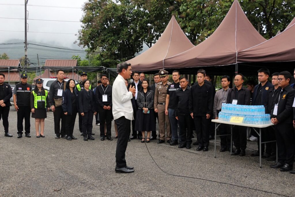 โอกาสนี้ ผู้ว่าราชการจังหวัดเชียงใหม่ได้พบปะทักทายให้กำลังใจกับผู้เดินทาง พร้อมทั้งมอบมอบนโยบายในการปฏิบัติงานให้กับเจ้าหน้าที่ผู้ควบคุมดูแลการเดินทาง โดยระบุว่า การเดินทางในครั้งนี้ขอให้ทุกฝ่ายเน้นย้ำความปลอดภัยเป็นสำคัญ การขับรถขอให้เรียงแถวต่อกันอย่างเป็นระเบียบและพร้อมเพรียง มีการประสานงานร่วมกันระหว่างรถในแต่ละคัน ให้การดูแลผู้เดินทางเป็นอย่างดีตลอด 24 ชั่วโมง พร้อมทั้งให้รายงานผลกลับมาให้ทราบอย่างต่อเนื่อง หากมีเหตุฉุกเฉินให้รีบประสานงานหน่วยฉุกเฉินและหน่วยงานที่เกี่ยวข้องในพื้นที่โดยเร็ว ส่วนพสกนิกรที่จะไปเข้าเฝ้าฯ กราบถวายบังคมพระบรมศพฯ ให้แต่งกายอย่างสุภาพเรียบร้อย ปฏิบัติตัวตามขั้นตอนและข้อกำหนดอย่างเคร่งครัด เพื่อถวายความเคารพและให้การดำเนินงานเป็นไปอย่างสมพระเกียรติ และขอให้ทุกคนเดินทางกลับมาสู่จังหวัดเชียงใหม่ด้วยความสวัสดิภาพ