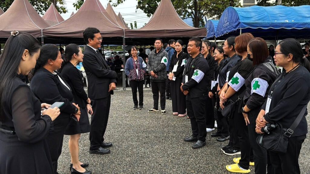เชียงใหม่ 19 พ.ย. – ช่วงค่ำวันนี้ที่ บริเวณด้านหลังศาลากลางจังหวัดเชียงใหม่ นายรัฐพล นราดิศร ผู้ว่าราชการจังหวัดเชียงใหม่ พร้อมด้วย นายศิวะ ธมิกานนท์ รองผู้ว่าราชการจังหวัดเชียงใหม่, นายชัยณรงค์ นันตาสาย ปลัดจังหวัดเชียงใหม่ หัวหน้าส่วนราชการและหน่วยงานที่เกี่ยวข้อง ทักทายให้กำลังใจก่อนร่วมปล่อยขบวนรถที่นำพสกนิกรชาวจังหวัดเชียงใหม่กลุ่มแรก จำนวน 750 คน จาก 5 อำเภอ ประกอบด้วย อำเภอกัลยาณิวัฒนา ฮอด แม่แจ่ม สันป่าตองและอำเภอแม่ริม เดินทางไปเข้ากราบถวายบังคมพระบรมศพสมเด็จพระนางเจ้าสิริกิติ์ พระบรมราชินีนาถ พระบรมราชชนนีพันปีหลวง ณ พระที่นั่งดุสิตมหาปราสาท ในพระบรมมหาราชวัง กรุงเทพมหานคร ในช่วงเช้าวันพรุ่งนี้ (20 พ.ย. 68) โดยพสกนิกรที่ร่วมเดินทางครั้งนี้ต่างยินดีมีสีหน้าที่เปี่ยมไปด้วยความมุ่งมั่นตั้งใจที่จะไปแสดงความจงรักภักดีและสำนึกในพระมหากรุณาธิคุณอย่างใกล้ชิด แม้ตลอดทั้งวันจะมีฝนตกโปรยปรายตลอดเวลาก็ไม่เป็นอุปสรรคในการมาคอเดินทางทุกคนบอกเป็นเสียงเดียวกันว่า นี่เป็นโอกาสสำคัญที่ครั้งหนึ่งในชีวิตที่จะได้เดินทางไปแสดงความเคารพต่อพระองค์เป็นครั้งสุดท้าย โดยจังหวัดเชียงใหม่ได้จัดเตรียมรถบัส จำนวน 16 คัน รถตู้ 1 คัน และรถตำรวจนำขบวนอีก 1 คัน สำหรับนำพาประชาชนเดินทางไปตามแผนที่วางไว้ พร้อมทั้งจัดเตรียมเจ้าหน้าที่ฝ่ายปกครอง ทหาร ตำรวจและเจ้าหน้าที่สาธารณสุขอยู่ประจำรถทุกคันเพื่อคอยอำนวยความสะดวกและดูแลความปลอดภัยตลอดทาง นอกจากนี้ก่อนเดินทางได้มีการตรวจวัดปริมาณแอลกอฮอล์และตรวจหาสารเสพติดของพนักงานขับรถในแต่ละคัน พร้อมเน้นย้ำควบคุมความเร็วด้วยระบบ GPS ตลอดเส้นทางด้วย