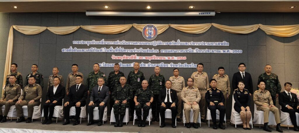 เชียงใหม่ 20 พ.ย.- ที่โรงแรมกรีนเลครีสอร์ท จ.เชียงใหม่ พลโท วรเทพ บุญญะ แม่ทัพภาคที่ 3 ในฐานะผู้บัญชาการหน่วยบัญชาการสกัดกั้นและปราบปรามยาเสพติด สารตั้งต้นและเคมีภัณฑ์ ชายแดนภาคเหนือ(นบ.ยส.35) ร่วมประชุมขับเคลื่อนแผนปฏิบัติการประจำปีงบประมาณ 2569 ร่วมกับหน่วยงานที่เกี่ยวข้อง ทั้งฝ่ายปกครอง 6 จังหวัดชายแดนภาคเหนือ พิกัด 25 อำเภอเสี่ยงหลัก ในจังหวัดเชียงใหม่ เชียงราย แม่ฮ่องสอน พะเยา น่านและตาก สำนักงานป้องกันและปราบปรามยาเสพติดภาค 5, ตำรวจภูธรภาค 5, ตำรวจปราบปรามยาเสพติด, หน่วยทหารสังกัดกองทัพภาคที่ 3 และกองกำลังป้องกันชายแดน เพื่อยกระดับการข่าวให้เข้มข้นขึ้น มุ่งสืบเสาะแหล่งผลิตเพื่อประสานความร่วมมือระหว่างประเทศในการทำลายฐานการผลิต ตัดเส้นทางขยายผลจับกุมถึงผู้ค้ารายใหญ่ และยึดอายัดทรัพย์สินเพื่อทำลายโครงสร้างเครือข่ายอย่างเป็นระบบ ควบคู่การสร้างความเข้มแข็งให้ชุมชนชายแดนผ่านชุดรักษาความปลอดภัยหมู่บ้าน เพื่อเป็นหูเป็นตาและแจ้งเตือนความเคลื่อนไหวผิดปกติ