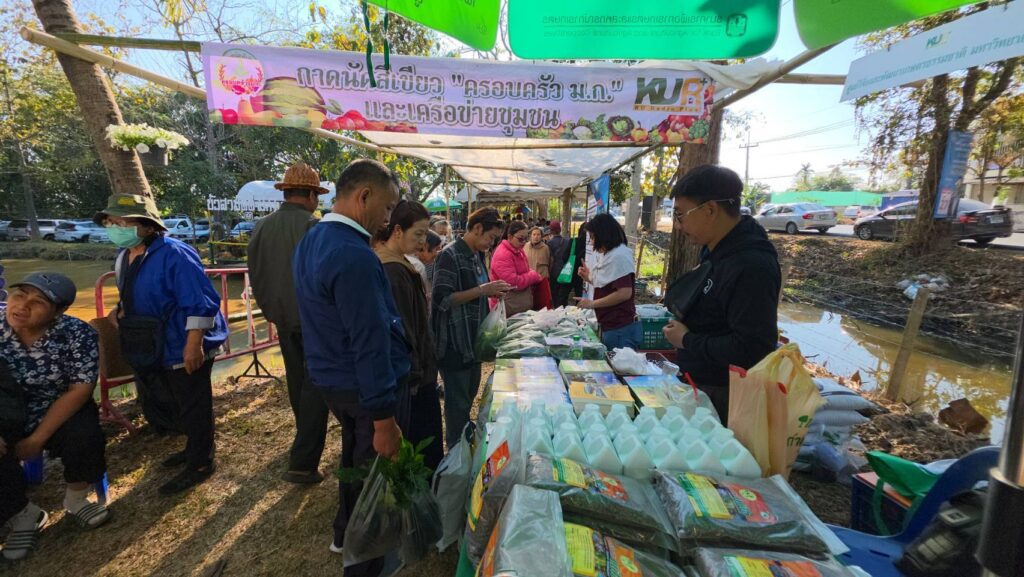 นอกจากนี้ภายในงานมีการจัดแสดงนิทรรศการผลงานวิจัยที่ใช้ได้จริงจากมหาวิทยาลัยเกษตรศาสตร์และหน่วยงานพันธมิตร อาทิ นวัตกรรมเกษตรแม่นยำ การแปรรูปสินค้าเกษตรเพื่อเพิ่มมูลค่า และการสาธิตเทคโนโลยีลดโลกร้อน รวมถึงเวทีเสวนาวิชาการที่เชิญผู้เชี่ยวชาญและปราชญ์ชาวบ้านมาร่วมแบ่งปันประสบการณ์ในหัวข้อ การสร้างความยั่งยืนบนวิถีพอเพียง การออกร้านจำหน่ายสินค้าคุณภาพจาก “ตลาดนัดสีเขียวครอบครัว ม.ก.” ซึ่งเป็นผลผลิตโดยตรงจากเครือข่ายผู้ฟังและเกษตรกรในพื้นที่ พร้อมการแจกกล้าพันธุ์ไม้ เมล็ดพันธุ์ดี พันธุ์ปลาและสารชีวภัณฑ์ต่าง ๆ เพื่อสนับสนุนการพัฒนาคุณภาพชีวิต