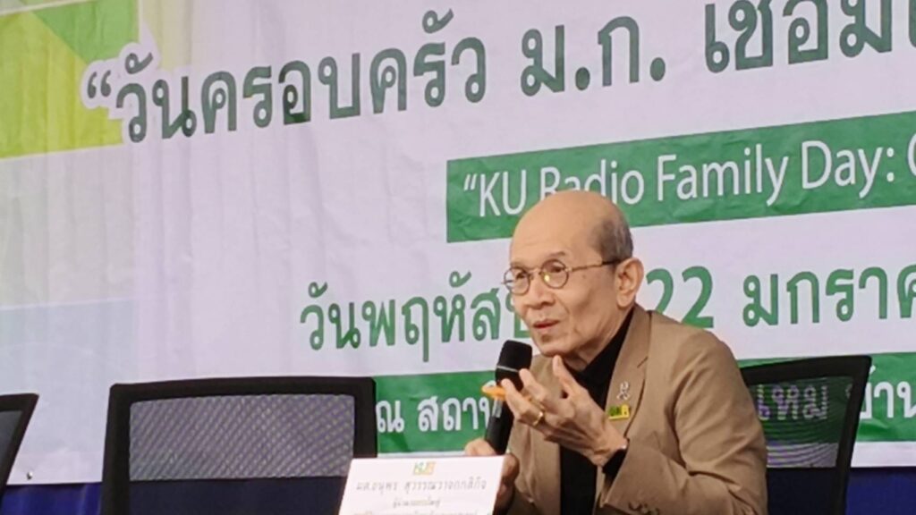 เชียงใหม่ 22 ม.ค.- ที่สถานีวิทยุมหาวิทยาลัยเกษตรศาสตร์จังหวัดเชียงใหม่(ม.ก.เชียงใหม่) ต.ป่าไผ่ อ.สันทราย จ.เชียงใหม่ ผศ.อนุพร สุวรรณวาจกกสิกิจ ผู้อำนวยการใหญ่สถานีวิทยุ ม.ก.เป็นประธานเปิดงานครบรอบ 61 ปีการก่อตั้งสถานีวิทยุ ม.ก.เชียงใหม่ภายใต้งาน “วันครอบครัว ม.ก. เชื่อมโยงทุกกลุ่มเป้าหมาย เพื่อความยั่งยืน” หรือ “KU Radio Family Day: Connecting All Stakeholders for Sustainability” เพื่อตอกย้ำบทบาทการเป็นสื่อกลางศาสตร์แห่งแผ่นดินที่รับใช้สังคมมาอย่างยาวนาน